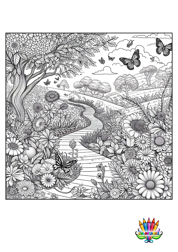Mandala papillon fleurs