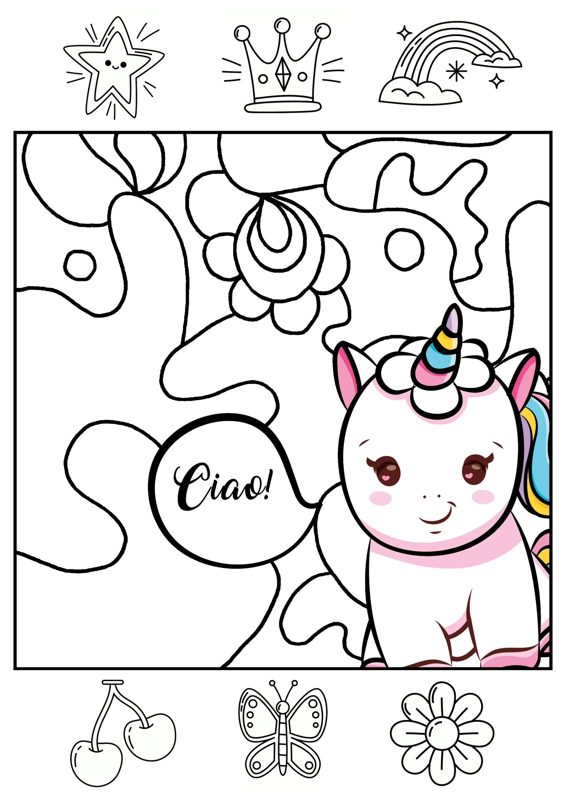 Collection Licornes – Coloriage 1 feuille A4 + 6 motifs offerts