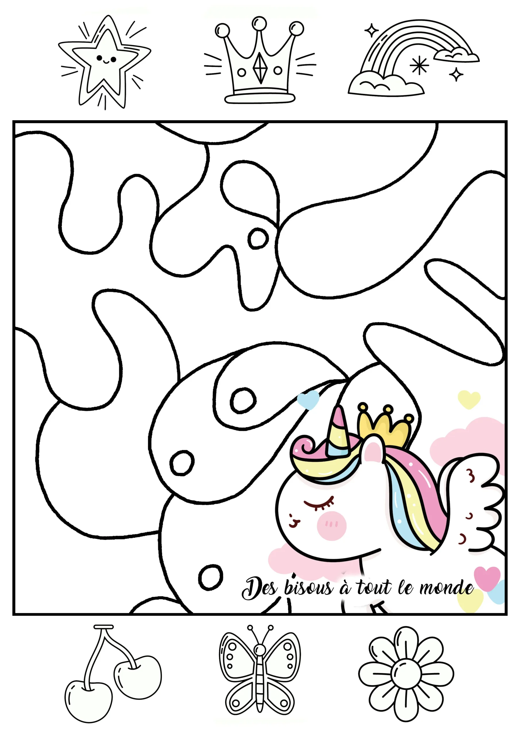 Collection Licornes – Coloriage 1 feuille A4 + 6 motifs offerts